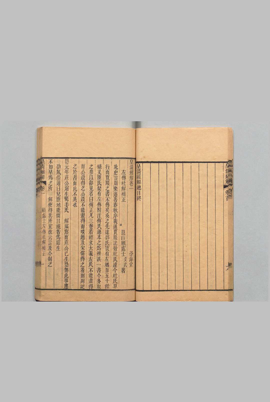 皇清经解 1400卷 首1卷 严杰,清道光9年 2025-10-31 自由飞翔收藏 评论 丛书书籍 33册 36.7g 30590页 《皇清经解》是清代学者阮元主持编纂的经学丛书,亦称《清经解》或《学海堂经解》。1825至1829年阮元时任两广总督,于广州学海堂召集严杰、夏修恕等学者编刻此书,旨在系统整理清初至乾嘉年间的经学研究成果,解决学海堂藏书不足的问题,全书共收录顾炎武、戴震等73位学者的183种著作,涵盖训诂、考据等领域,总1400卷。 猜你喜欢下面这些: 昭代丛书 张潮(清)清刊本 眉公十种藏书 陈继儒 ,明崇祯9年 经训堂丛书 毕元(清),清乾隆53年 竹屿山房杂部 存宋氏家仪部4卷 家规部4卷 家要部3卷 燕间部2卷 树畜部4卷 尊生部10卷 宋诩 宋公望 明刊本 洪北江全集 洪亮吉(清)刊本 ,清乾隆 ~ ,清嘉庆 资源下载此资源下载价格为48叶币立即购买无法下载与分享被取消请联系客服微信号: <1376292438 > 访客可免登陆直接在线支付获取下载链接! 分类:其他•古籍 标签:丛书